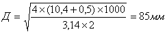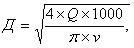 Где 1,2 - коэффициента на неучтенную расход воды; k3-коэффициент неравномерности водопотребления (1,3-1,5); n время работы в смену, ч; Σq - суммарный расход воды в смену, л, на все производственные потребности, которые совпадают по времени работы. Диаметр трубопровода, мм, рассчитанный по формуле: